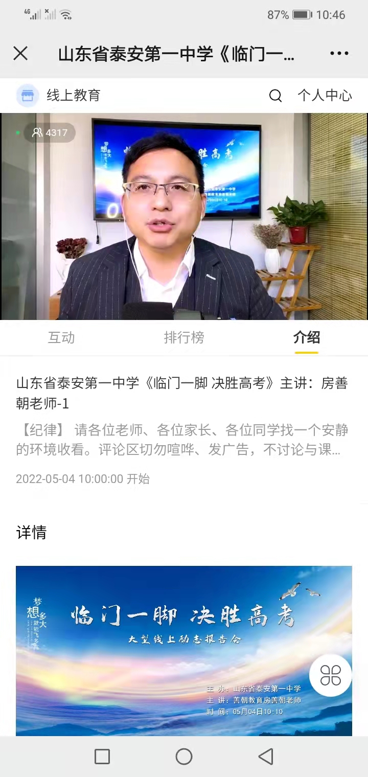 泰安一中召开2022年4月复学“开学第一课”主题班会