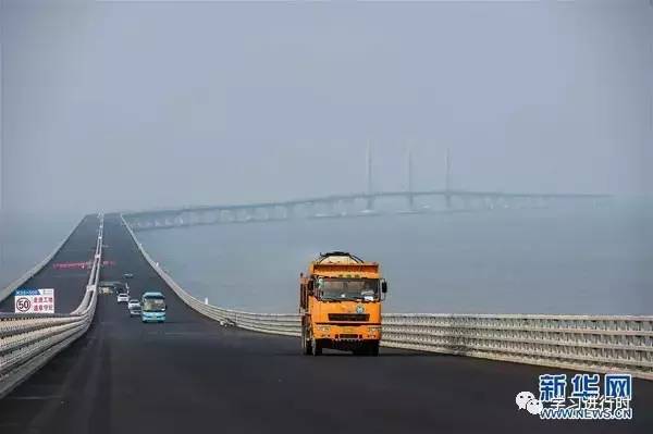 一辆运输沥青的工程车辆行驶在港珠澳大桥桥面上(429日摄)。新华社记者 刘大伟摄