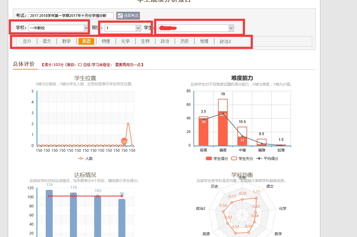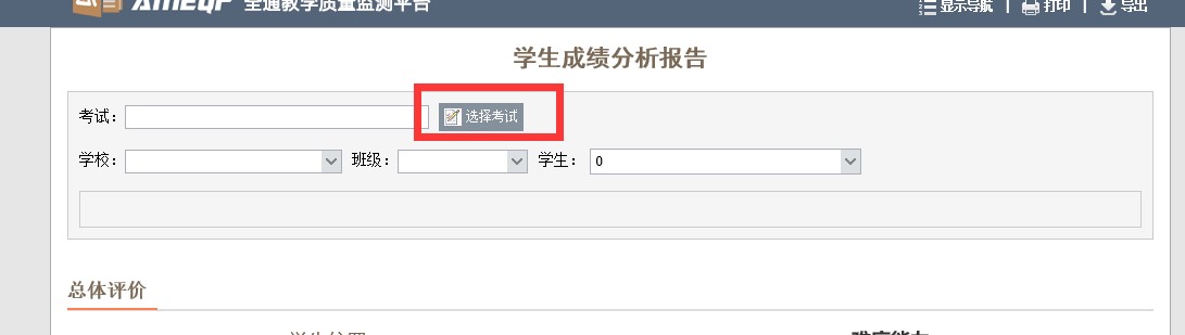 5、点击查询,选择蓝色字体的考试 6、选择学校、班级、学生,然后点击下方的对应科目即可查看对应的成绩。