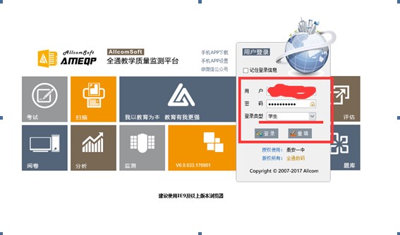 学生成绩查询说明 1、首先登录网址//112.245.48.30:8000/ameqp 2、用户名为手机号,初次登录密码也是手机号。(登录以后可以修改密码)登录类型为学生