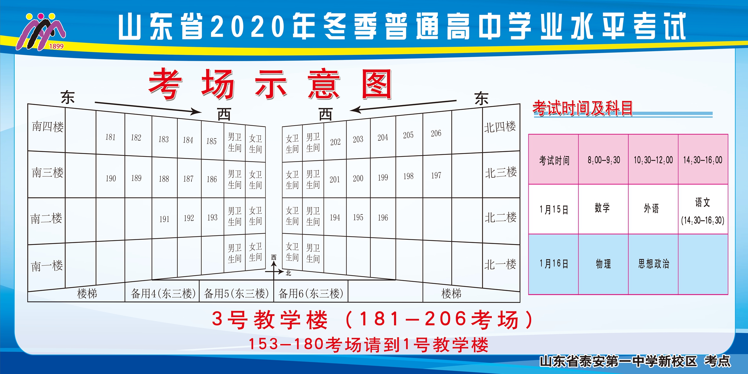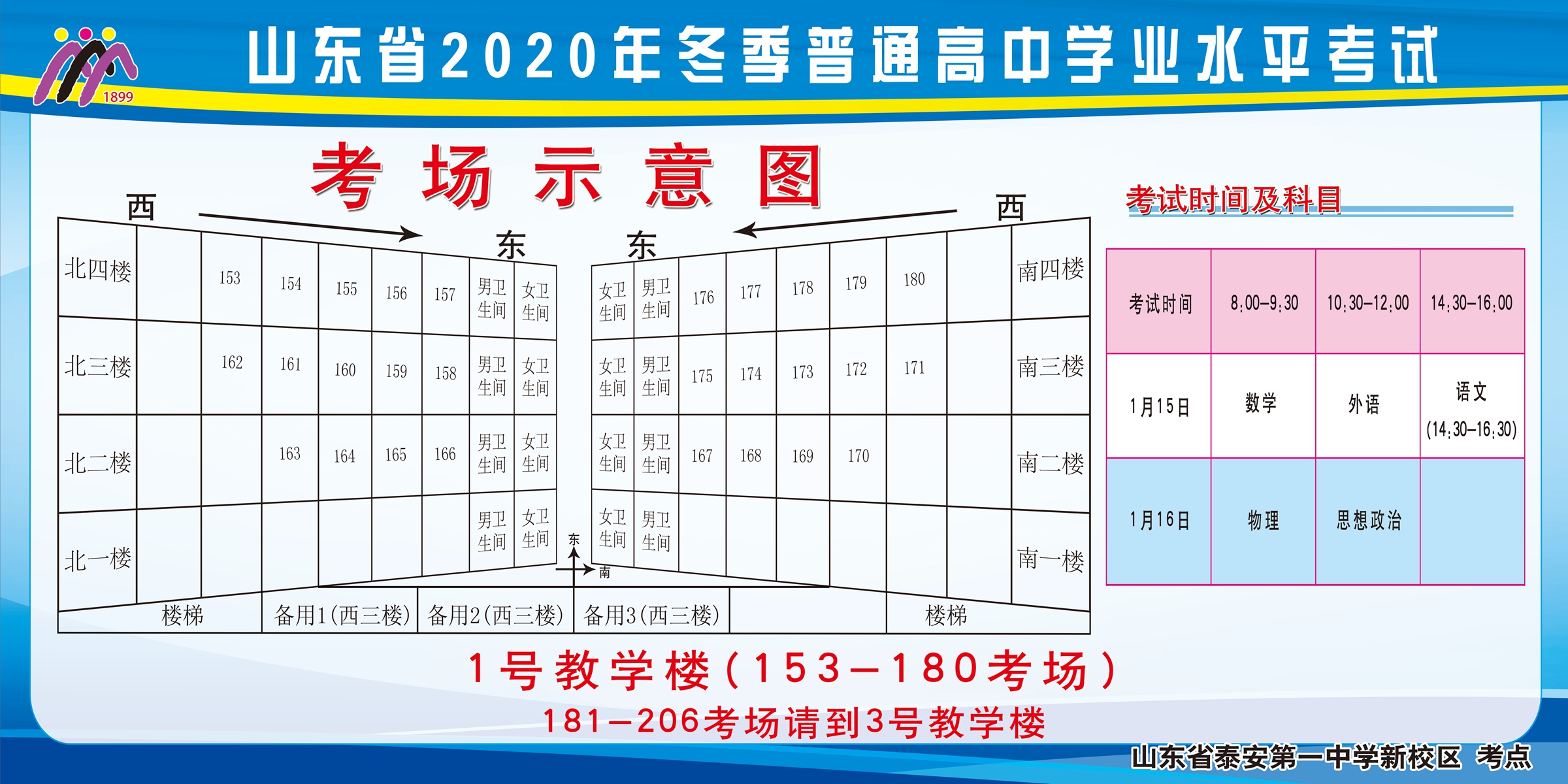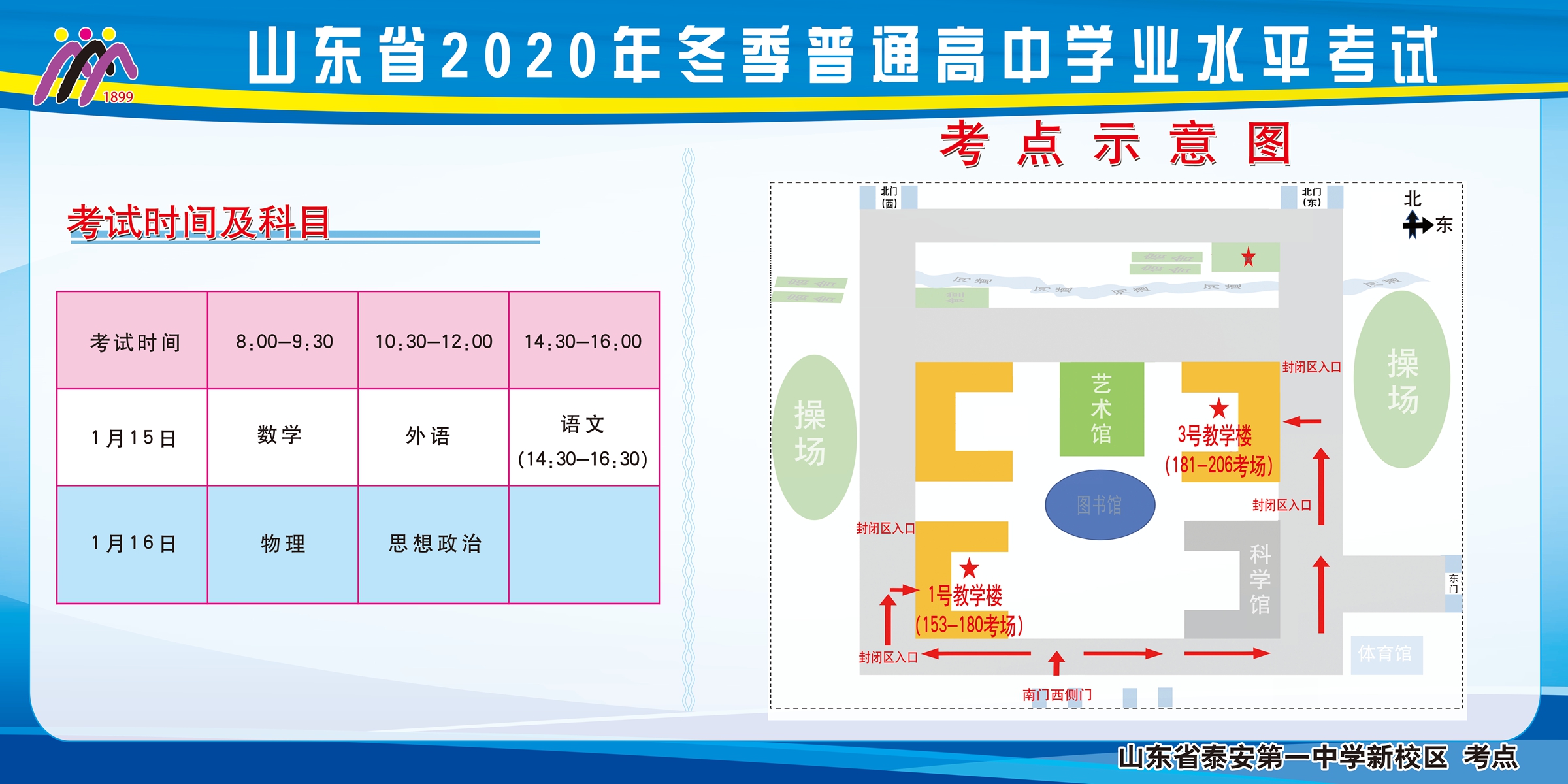 山东省2020年冬季普通高中学业水平考试 泰安一中新校区考点