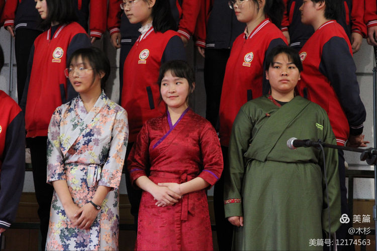 整个朗诵会上,令人热泪盈眶的时刻有很多。藏族同学们用藏语大声说出“我爱你中国”就是其中一个。而藏族同学扎西群培用字正腔圆的普通话领诵的《不朽》,更是赢得了观众们热烈的赞叹和掌声。