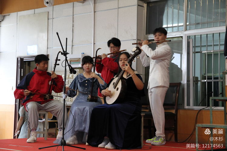 心有多大,舞台就有多大,民乐团的同学也拿出“十八般武艺”为本班的朗诵现场伴奏。