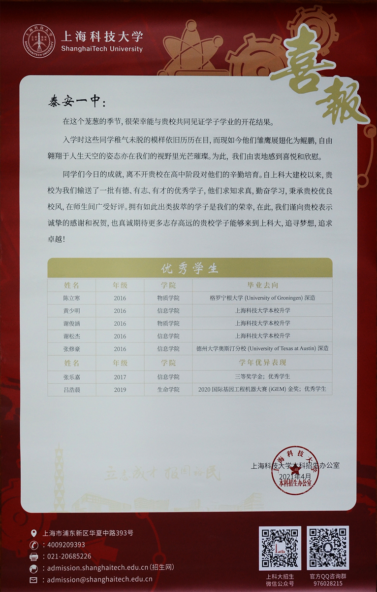 上海科技大学喜报