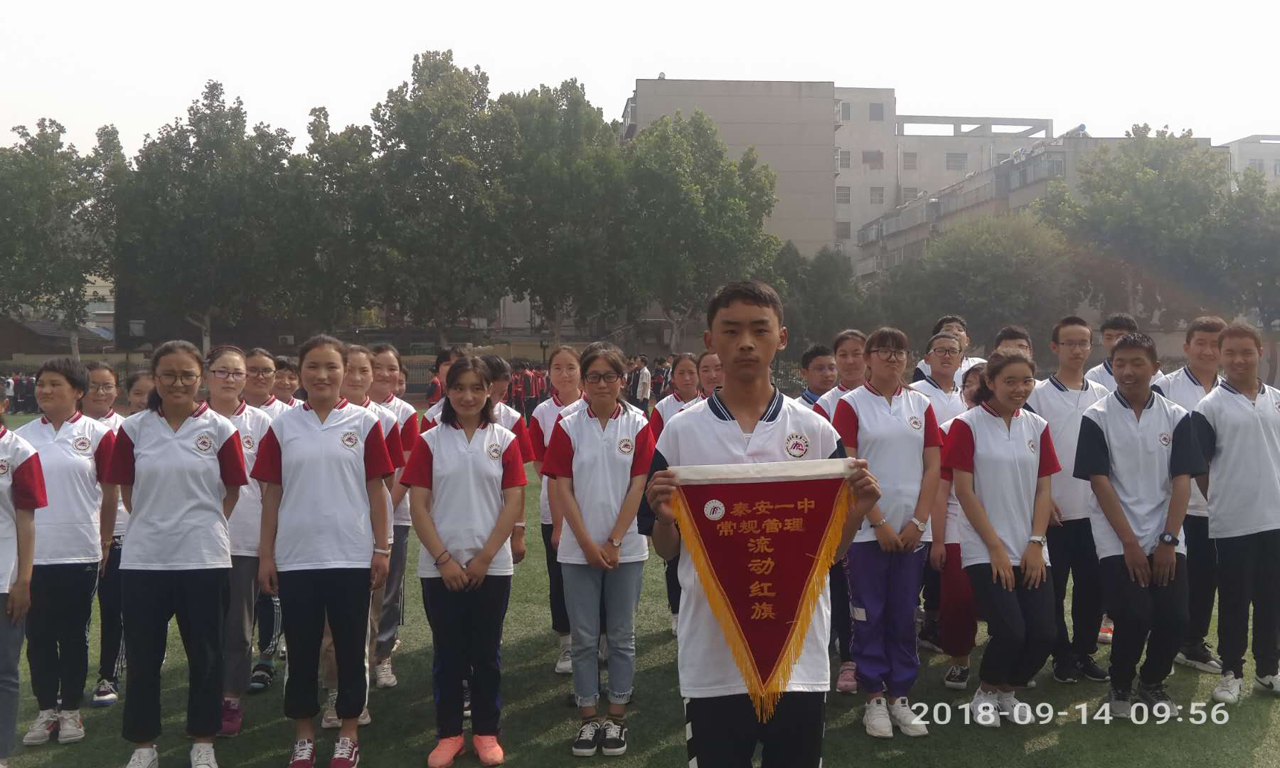 为创建全国文明城市,培养全校学生良好的行为习惯和学习习惯,营造一个安全、文明、卫生、和谐的学习生活环境,以“上学零迟到、自习零抬头、校园零手机、考试零作弊”为目标,泰安一中在本学期开学第一周开展“学生管理规范周”活动,对全校学生的日常行为加强规范,对宿舍、教室内外的卫生、纪律、安全进行检查评比。