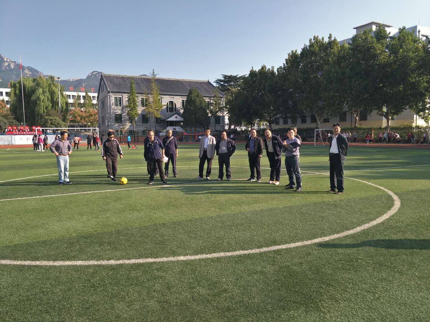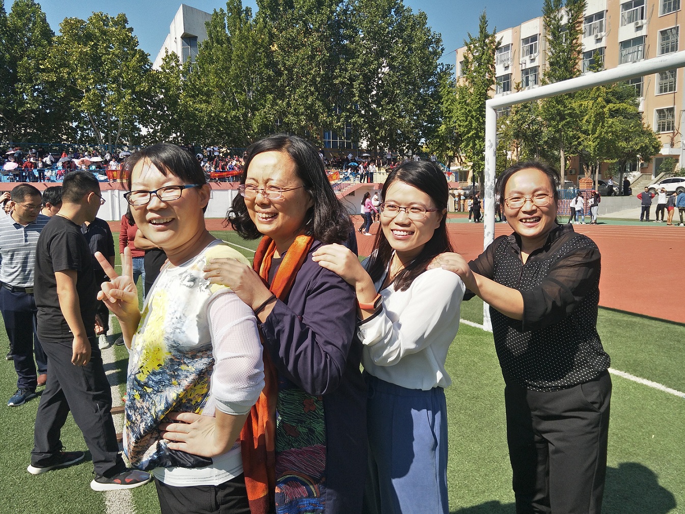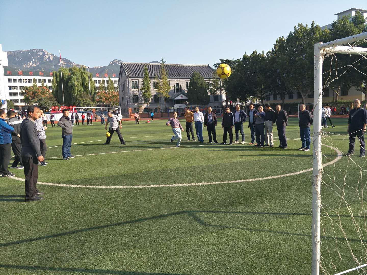 泰安一中2018年教职工运动会于9月29-30日隆重举行,本次运动会设置了男女老年组、中年组和青年组三个组别。来自全校的400多名教师分别参加了男女“足球定点射门”、“实心球投准”、“篮球定点投篮”3个单项项目和“4×100米”接力、“5人踩木屐接力”、“10人单脚火车跑得快”3个集体项目的比赛。
