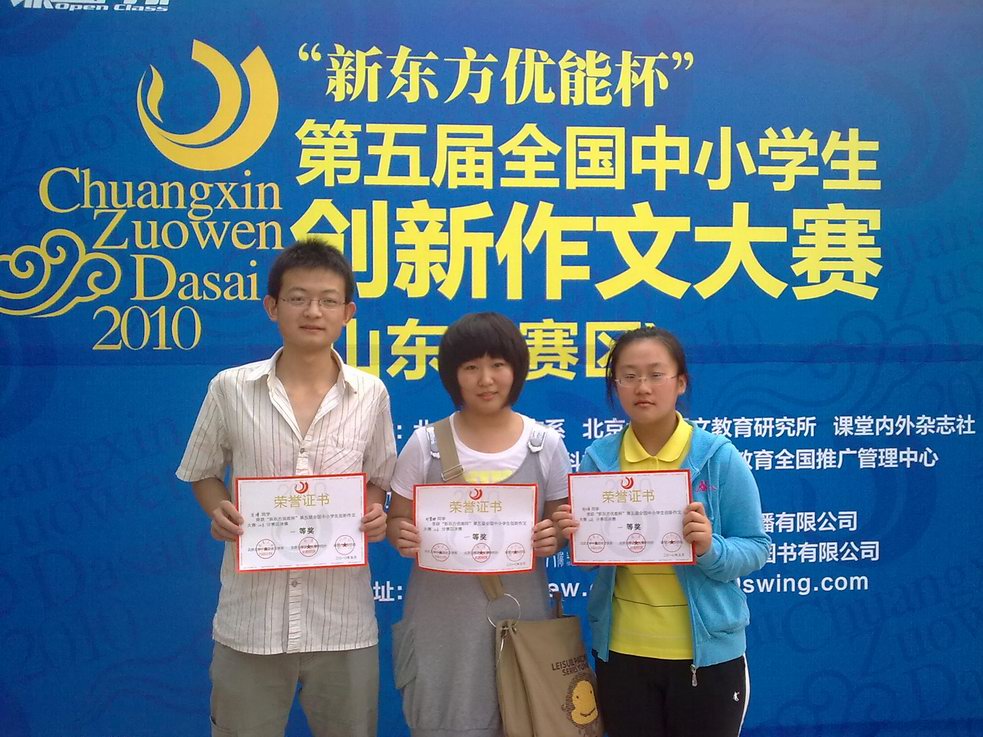 529日结束的“新东方优能杯”第五届全国中小学生创新作文大赛山东分赛区决赛中,我校学生取得佳绩,3人获省一等奖,7人获省二等奖,24人获省三等奖。其中,获省一等奖的学生将参加今年725日于北京大学举办的全国总决赛,并有机会获得北京大学、山东大学、复旦大学、南京大学、南开大学、中山大学、长安大学等30余所高校的自主选拔推荐资格。同时,我校也被确定为“创新作文教育实验基地”。