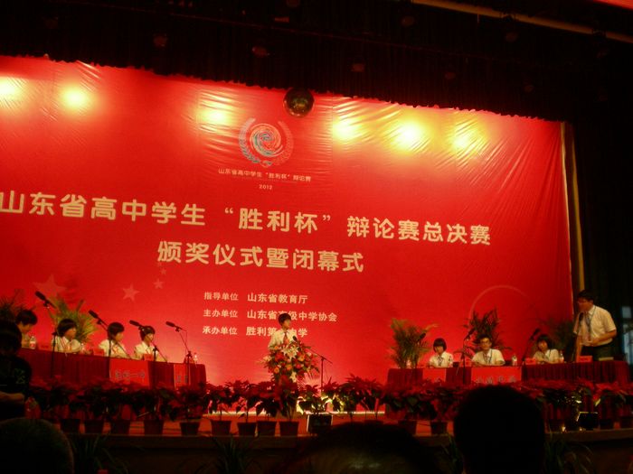 5月12日至5月13日,2012年山东省高中学生“胜利杯”辩论赛在东营市胜利油田第一中学举行。我校代表队由五名参赛辩手和七名观摩队员组成,李秀笃副校长担任领队。路庆华老师被聘请为辩论赛评委。经过激烈的比赛,我校代表队获得优秀组织奖,刘恒瑞、高天元、曹璠、李文硕、张松啸同学荣获优秀辩手称号,刘海燕、董刚老师荣获优秀指导老师奖。 本届辩论赛由山东省高中协会主办、胜利一中具体承办,共有来自全省各地的34所知名高中的400多名师生参加。在一天半的时间里,共进行了49场比赛。无论是参赛队伍,还是参赛人数,都是历届辩论赛最多的一次。 本次辩论赛的两个辩题分别为“代沟产生的责任主要在父母/子女”、“赏识教育/挫折教育更能促进中学生的发展”。 在比赛过程中,我校参赛辩手面对烟台二中、济宁一中等强队,机智勇敢,沉着应对,发挥出了很高的水平。每场比赛都精彩纷呈、高潮迭起,唇枪舌战中处处充满了胜负的悬念,你来我往中时时闪现着思维的火花。 我校参赛辩手和观摩人员还分别观摩、学习了各个名校辩论队的辩论比赛过程,感受了名校代表队那丰厚的文化知识、精湛的表达艺术、缜密的逻辑思维,默契的团队配合。每一场辩论都赢得了无数掌声,每一场辩论赛都阐释了“对立中,学问生”的精髓。这样精彩的思维博弈给我们呈现了视听盛宴,让每一位参与者都深深陶醉其中。 通过比赛,同学们收获了信心,积累了经验,同时也看到了与别人的差距,找到了今后努力的方向。 赛后,我校代表队全体成员积极向辩论赛点评嘉宾请教,与名校选手交流。比赛场地变成了以辩会友、开阔眼界的空间,达到了通过比赛学习提高的目的。(团委) |