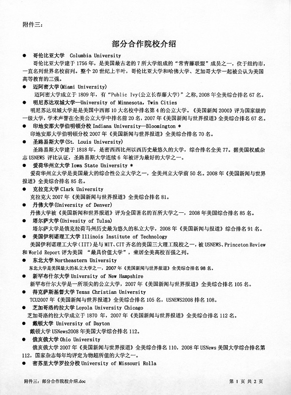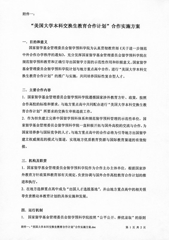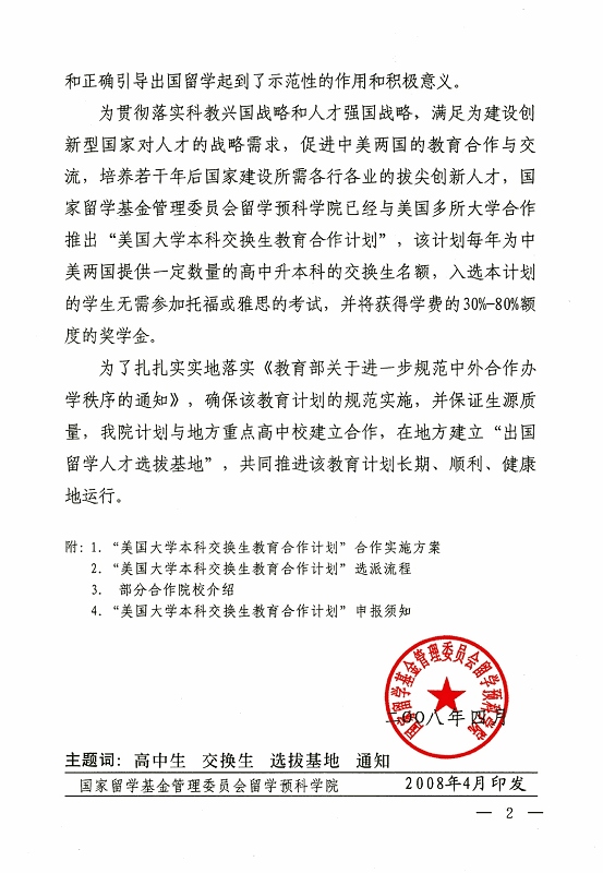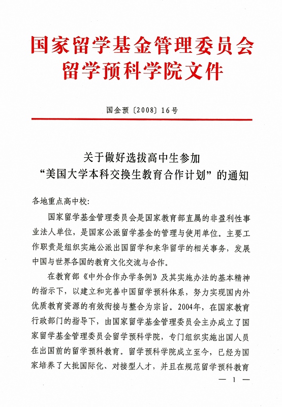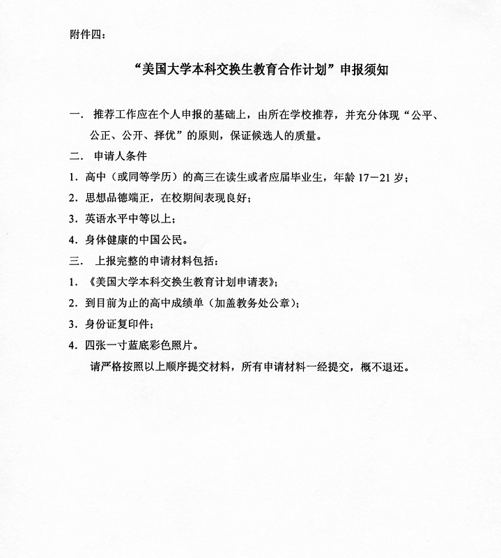 选拔高中生参加“美国大学本科交换生教育合作计划”的通知