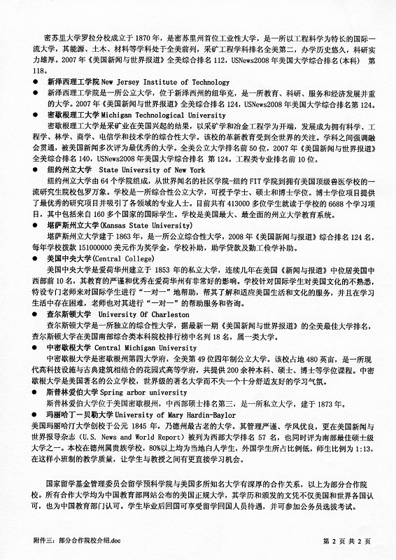 保送学生于2008914日到北京报到,签订入学协议、体检、注册美国大学并进行全封闭式的出国前学习。