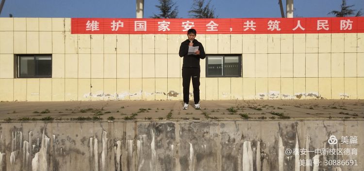 国家安全,不仅关乎国家利益,而且关系到每个公民的切身利益。为贯彻落实习近平总书记提出的“总体国家安全观”,提高中学生关于国家安全的法律意识,依法履行自身维护国家安全方面的职责和义务,4月19日,泰安一中新校区2019级全体师生齐聚学校西操场,举行“维护国家安全,共筑人民防线”主题升旗仪式。