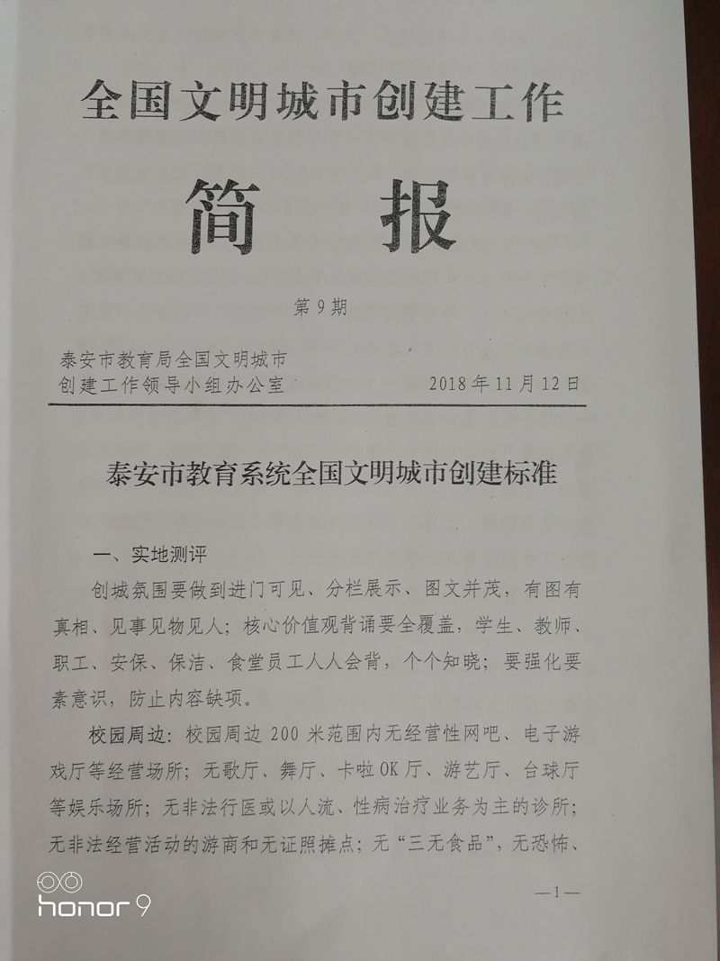 泰安市教育系统全国文明城市创建标准