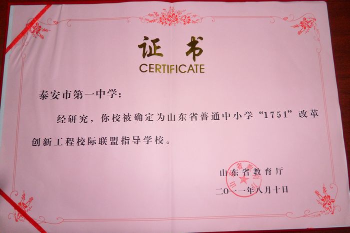 8月10日至12日,山东省教育厅在日照召开山东省普通中小学“1751”改革创新工程第二次工作会议。作为泰安市高中学段唯一一所学校,我校被省教育厅确定为山东省普通中小学“1751”改革创新工程校级联盟指导学校。