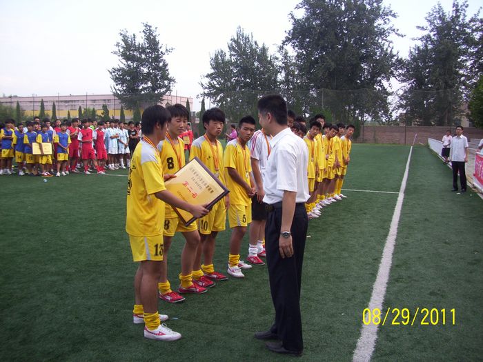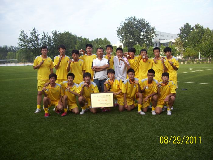 2011年山东省首届中小学生体育联赛足球比赛8月22日至29日在潍坊鲁能足球学校举行。我校足球队团结协作,顽强拼搏,赛出风格,赛出水平,以四胜二负的战绩,荣获亚军。 王建龙老师获优秀教练员,张淼、冯润泽同学获优秀运动员。