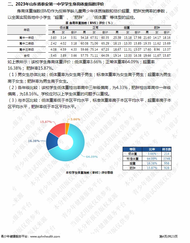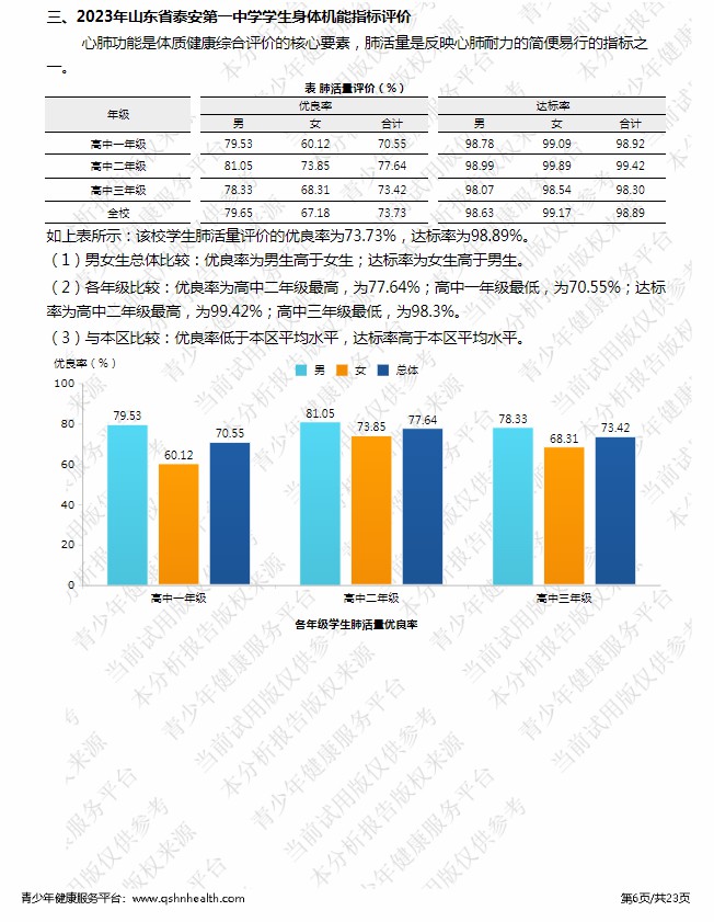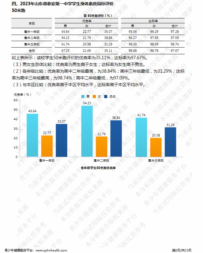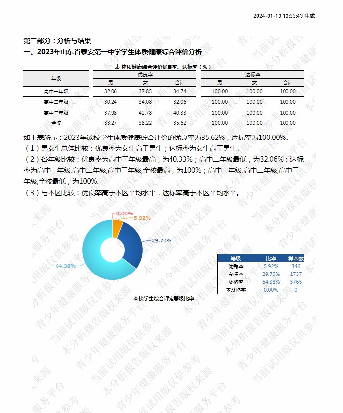 【体育评价】泰安一中2023年度学生体质健康测试成绩评价